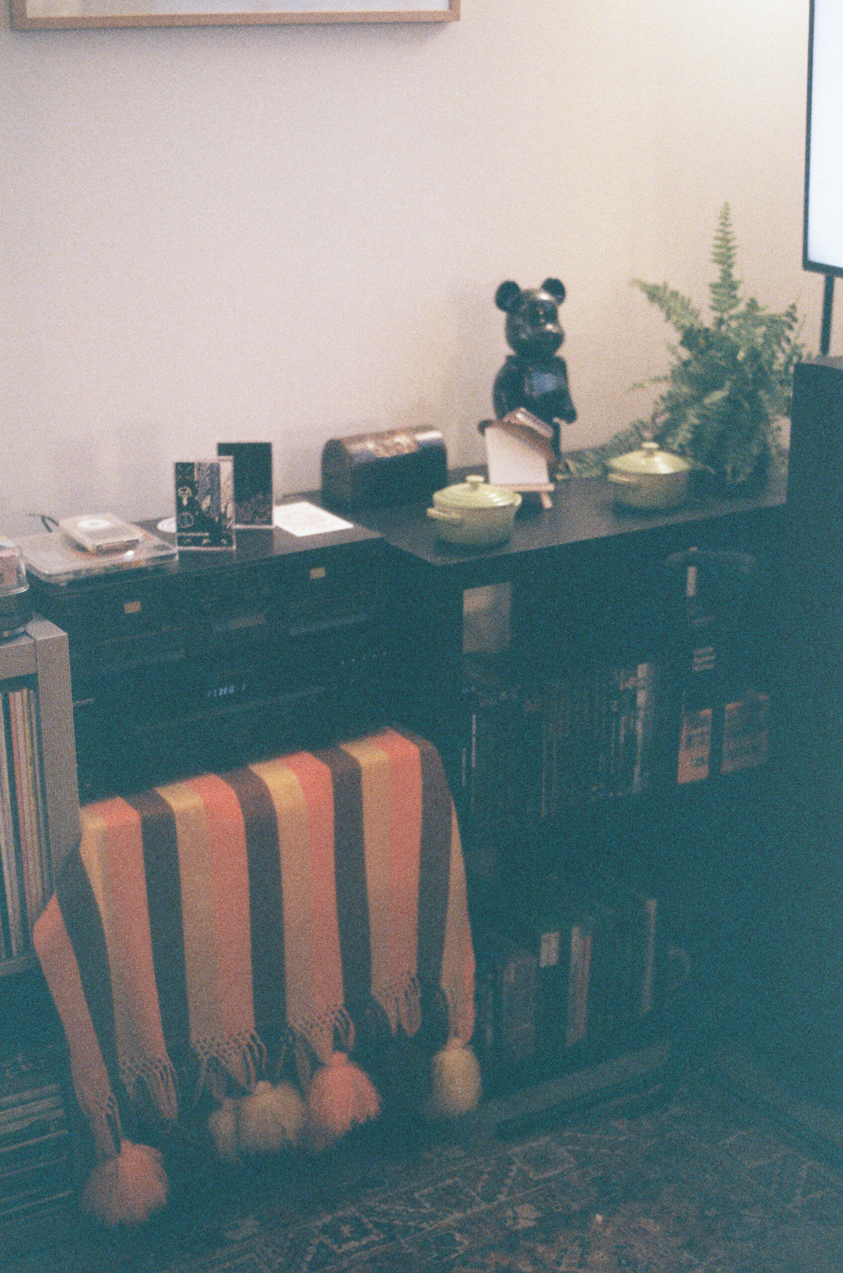 I think you can learn a lot about someone by looking at their living space, especially if they live alone. I've lived in this one bedroom for over a year and by this point I have extended myself into every nook and cranny of it (all <500 sqft). I made a little project out of designing my interior intentionally on top of whatever made its way into my space naturally. I leaned into my preference for orange and tried to put as many orange things front and center as possible. Now that my time in this apartment has an end point (I'm moving in a few months), I wanted to document the apartment in its full form before I need to pack it up. I tried to capture as many little scenes as exist within the three rooms of my place, and I think there's a lot of personality jammed into such a small space. So here's a little look into my house. Enjoy!