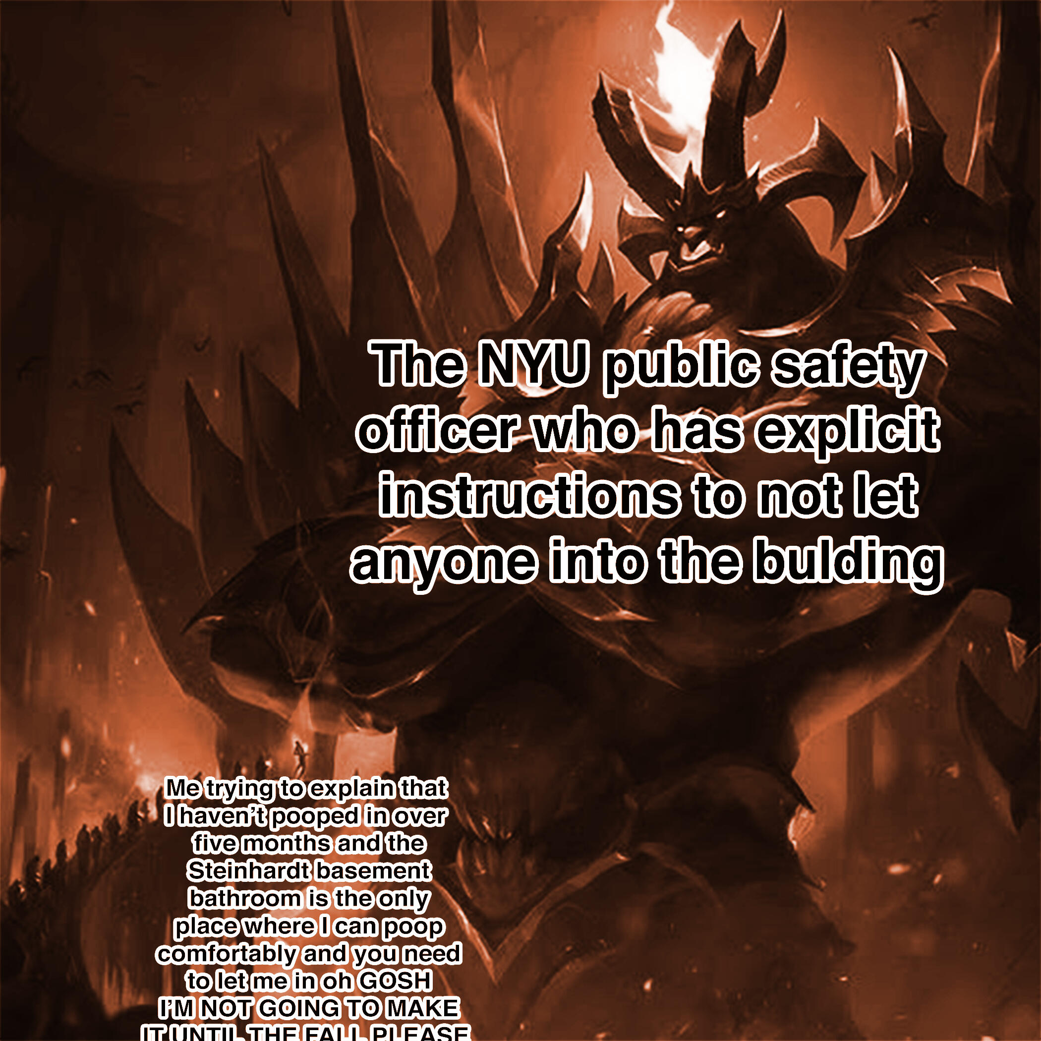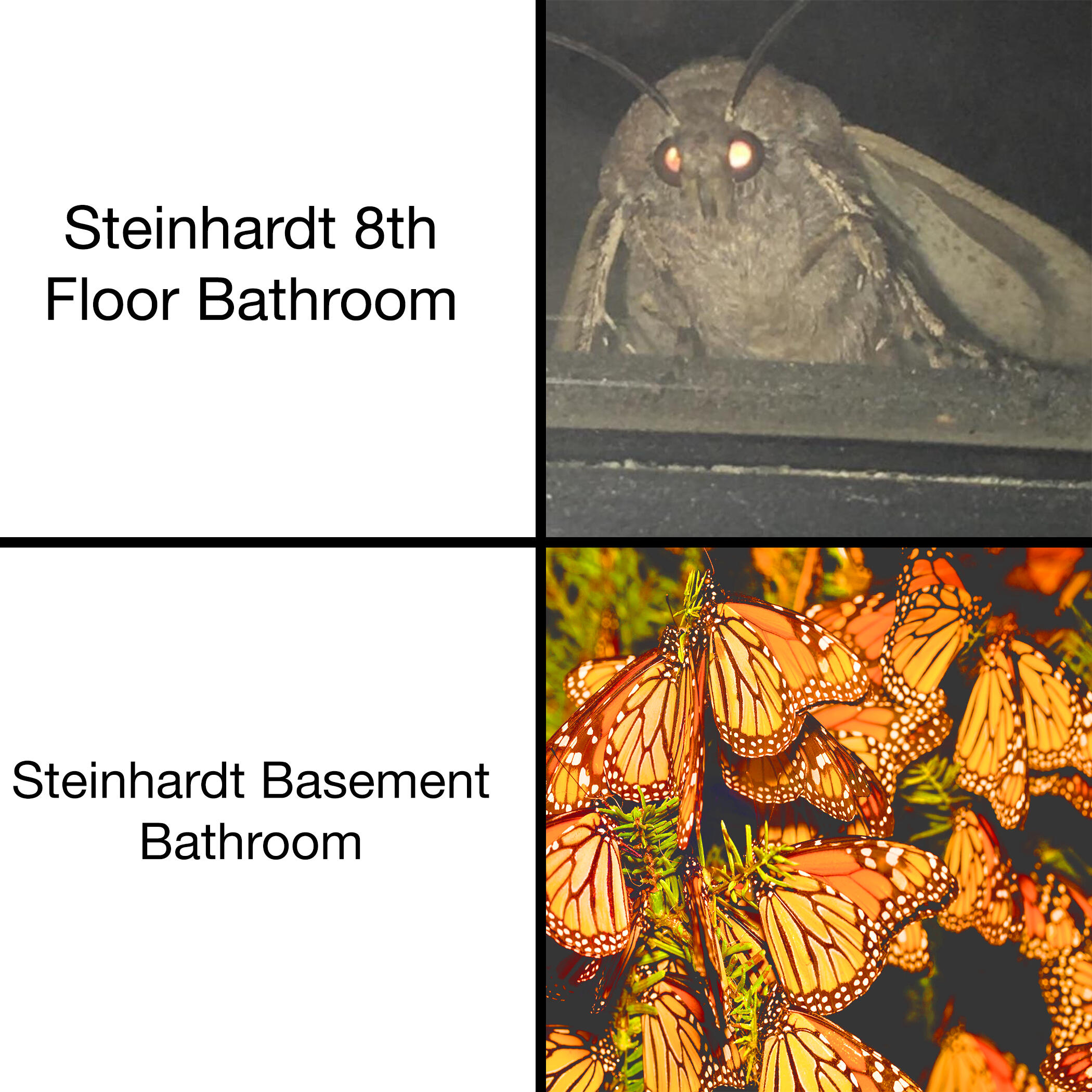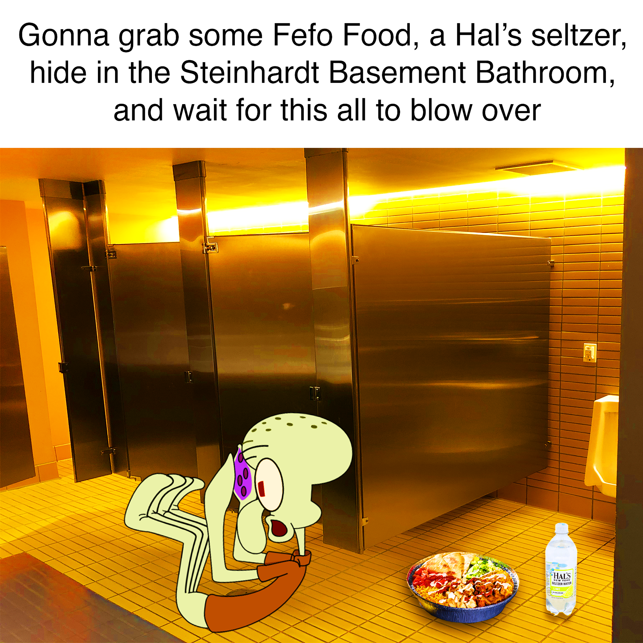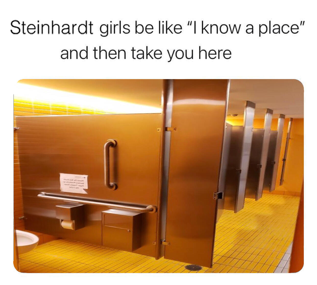 From 2019 to 2023, I ran a meme page promoting the basement bathroom of the NYU Steinhardt building. The project satirized the mass proliferation of social media pages among NYU institutions such as dorms, dining halls, degree programs, and schools within the university. The bathroom was unique for its iconic orange tiling, making it an easy location to associate to a brand and performed personality. Contrasting the professional and polished tone of NYU official social media pages, the tone of the page was crass, ironic, and deeply rooted in internet meme culture and ironic humor.When the COVID-19 pandemic struck in 2020, the page became a rallying point for Steinhardt students who yearned to return to campus, amplifying the nostalgic significance of the bathroom as a place.The full page and additional content is still available on Instagram, below is a selection of my favorite grid posts.