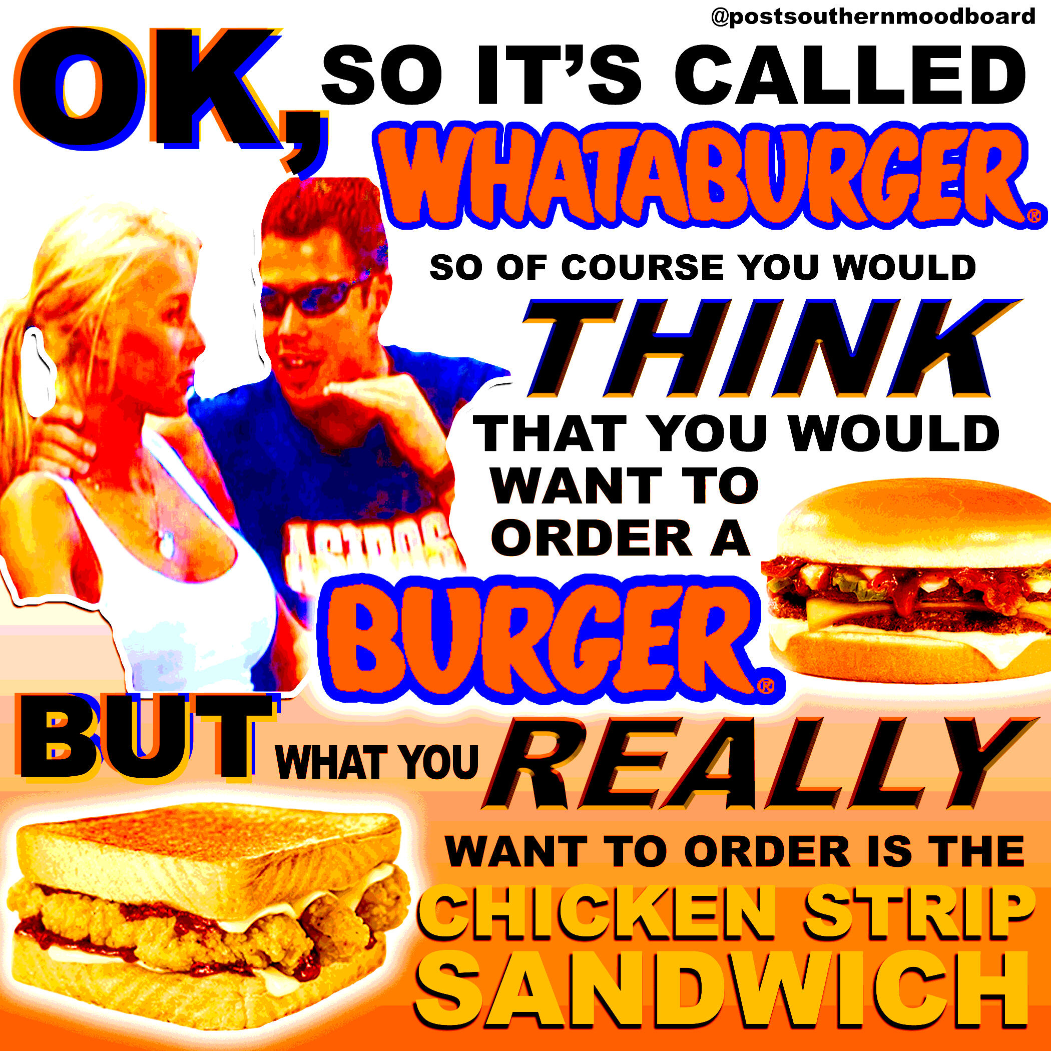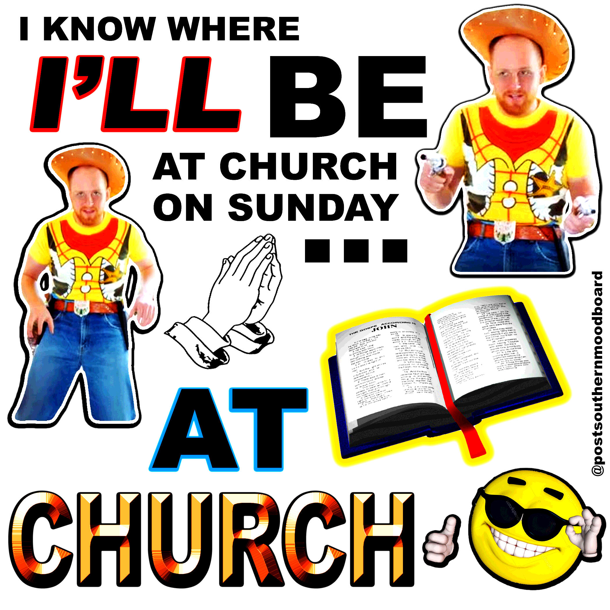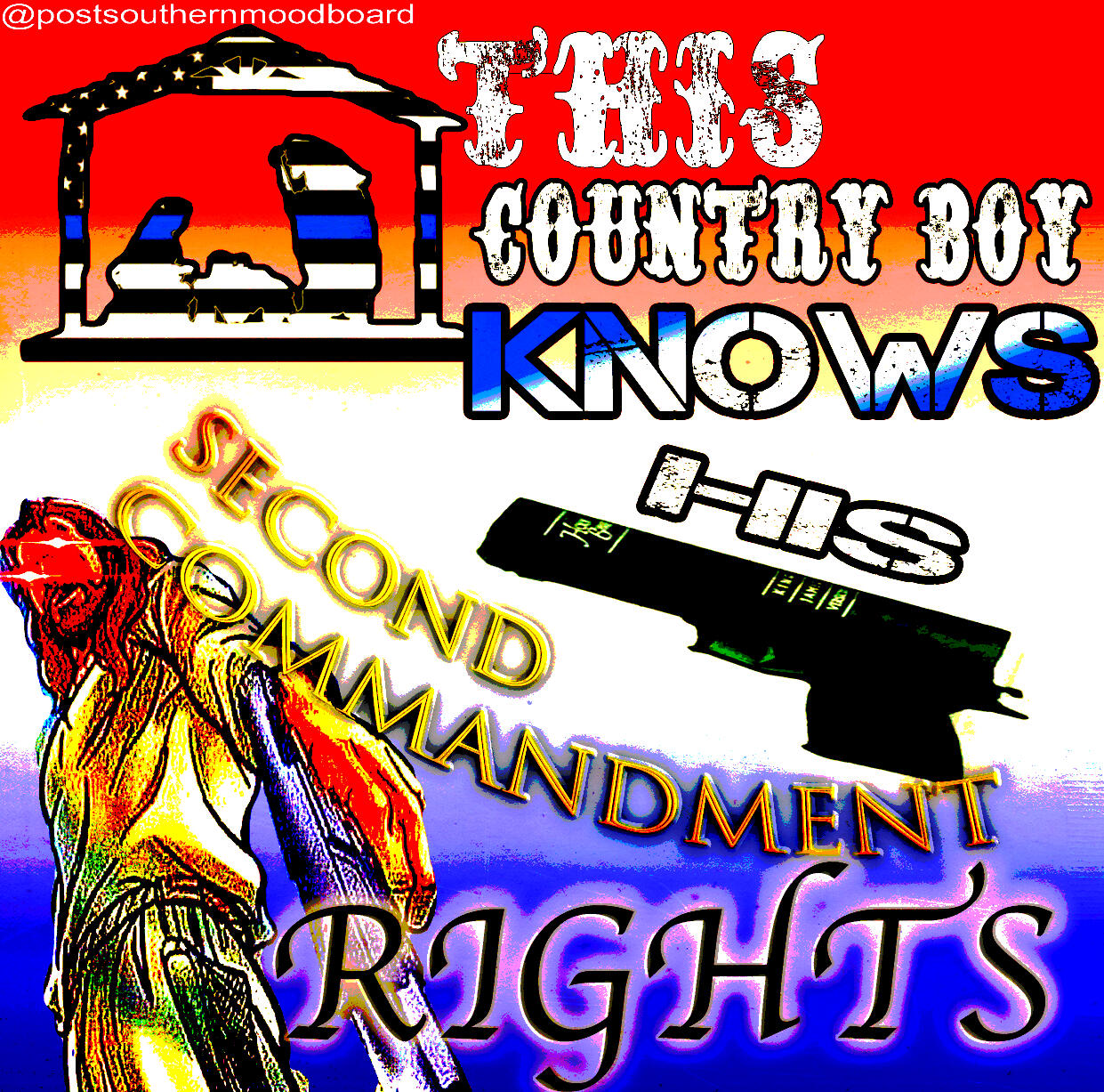 From 2020 to 2023, I ran an Instagram meme page called @postsouthernmoodboard. The page served as a platform for my interests in digital art and graphic design, shitposting, and for a meta-analysis of my own personal relationship to my Southern upbringing as I became an outside observer to my previous culture after moving to New York from 2017-2022. The full project included a gallery of Instagram highlights which showcased various aesthetics which I associated ironically to the Southern and Western culture and memetics which I was satirizing.The complete works of this project are still available on Instagram. Below is a selection of my favorite grid posts.