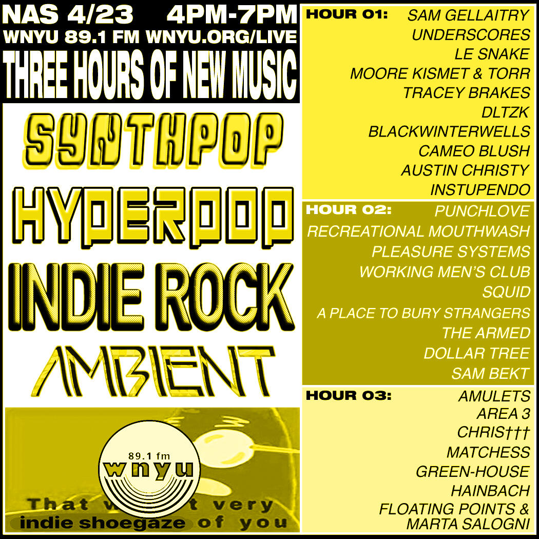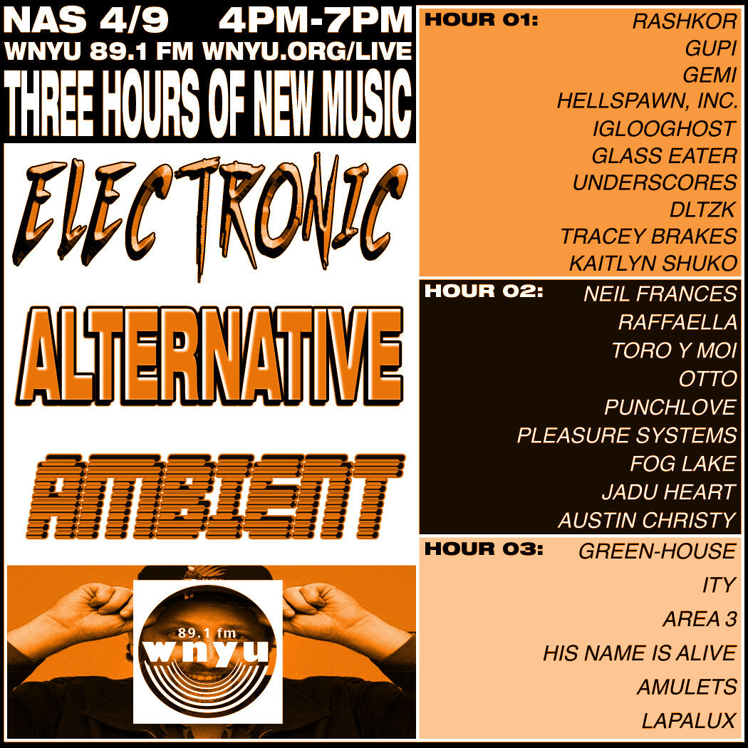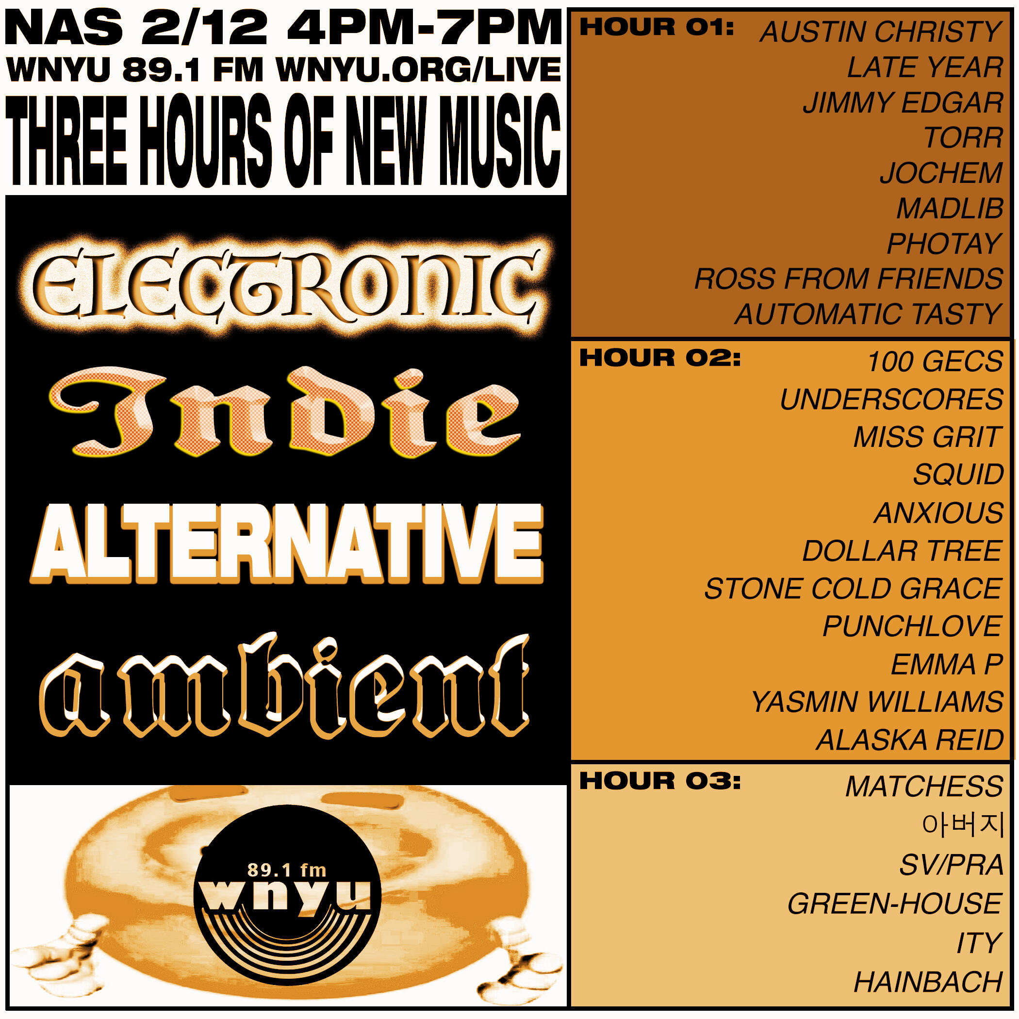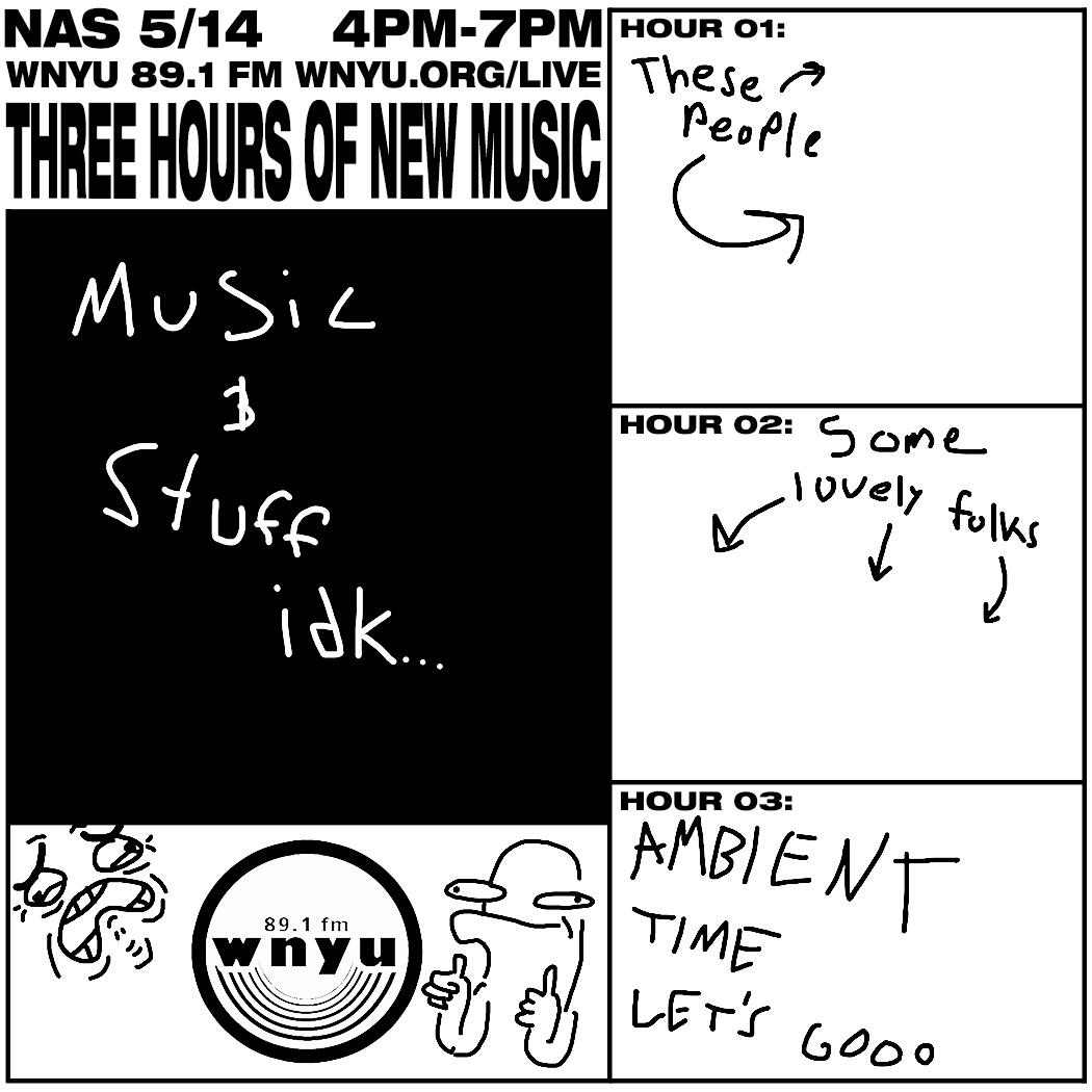 From fall 2020 to spring 2021, I took over the host slot for a weekly FM/online radio show called The New Afternoon Show, a bedrock of WNYU's programming and the station's longest running show. As host, I curated a selection of music from independent and underground musicians from online music communities and New York City's own independent music scene. For three hours each Friday evening from 4-7 PM, I played a hand-curated selection of electronic, rock, rap, and ambient music. Every week, I prepared a show poster to tease the week's lineup and promote the show on social media. Below is the full collection of posters I made for the show.