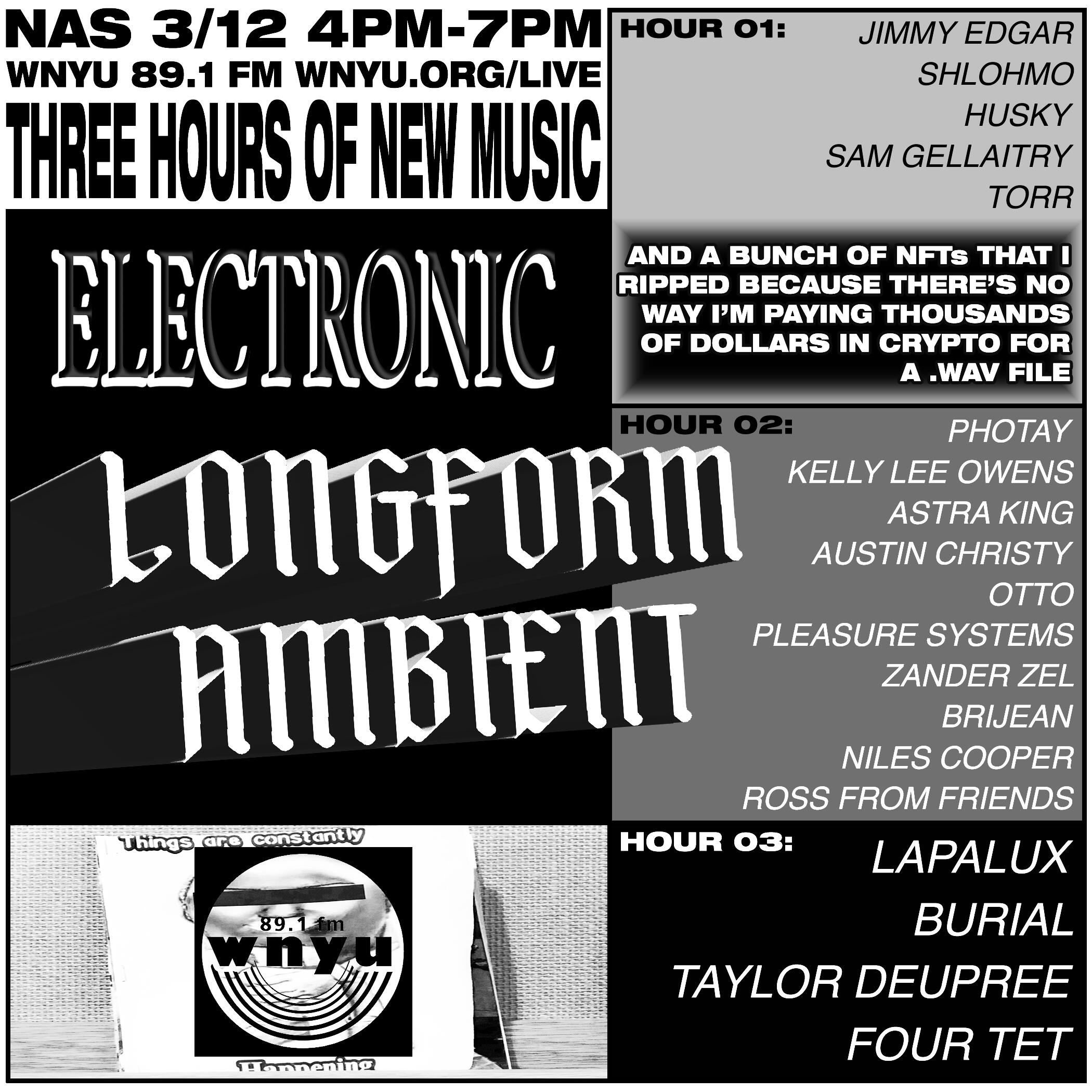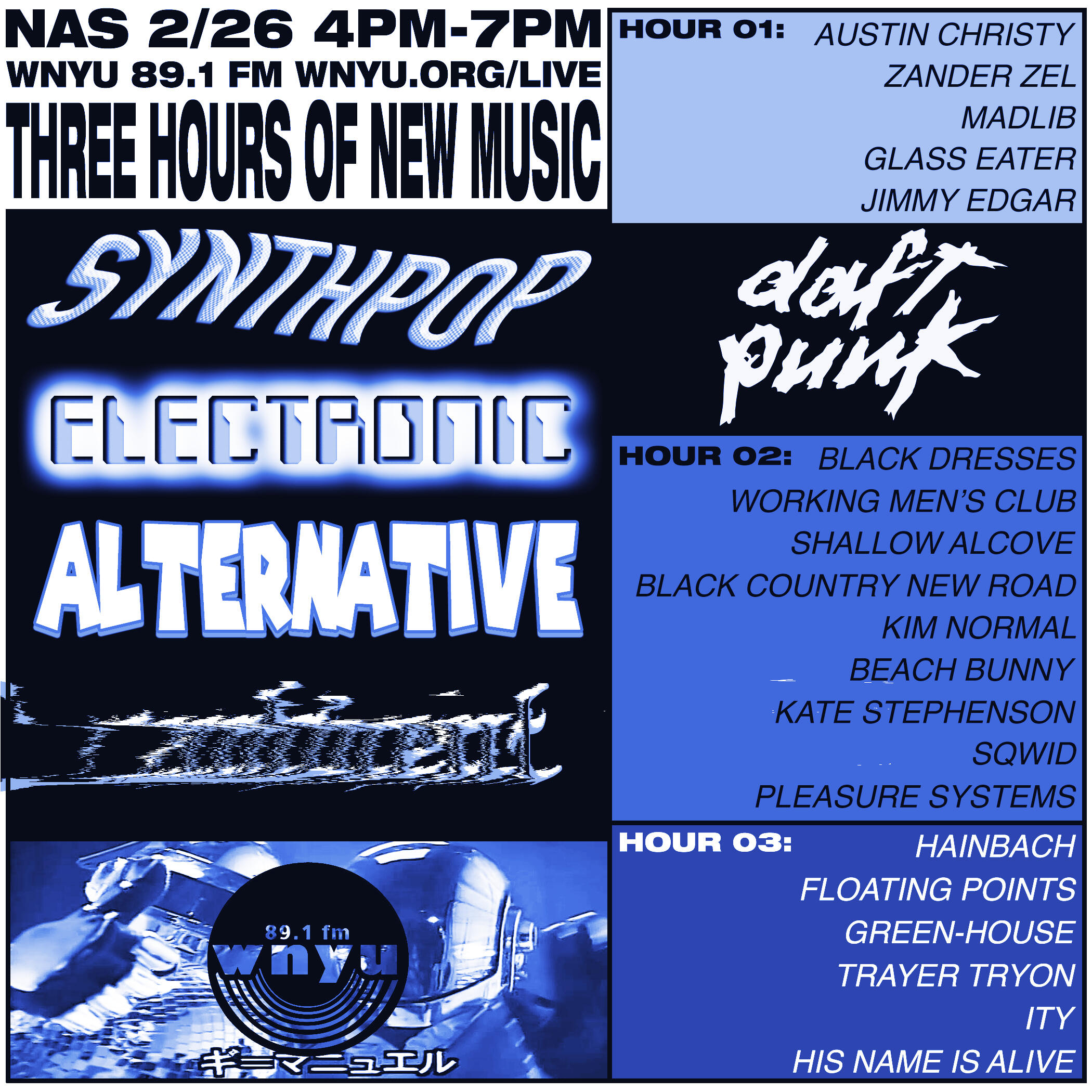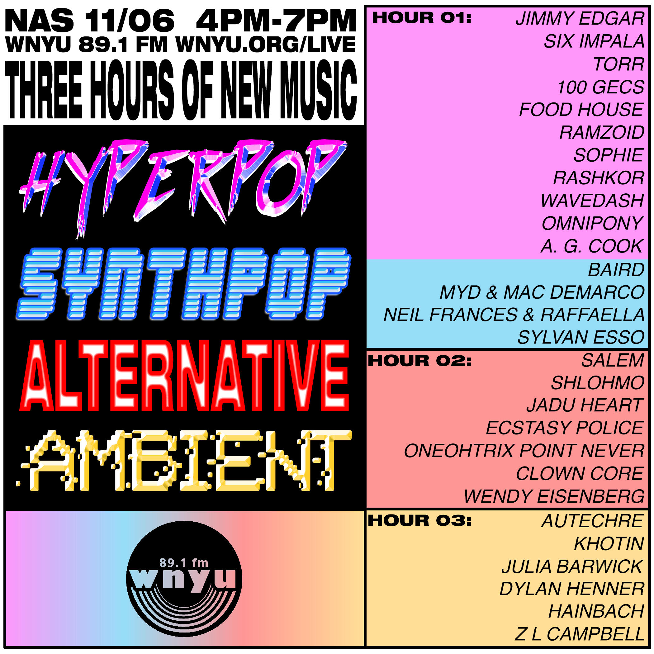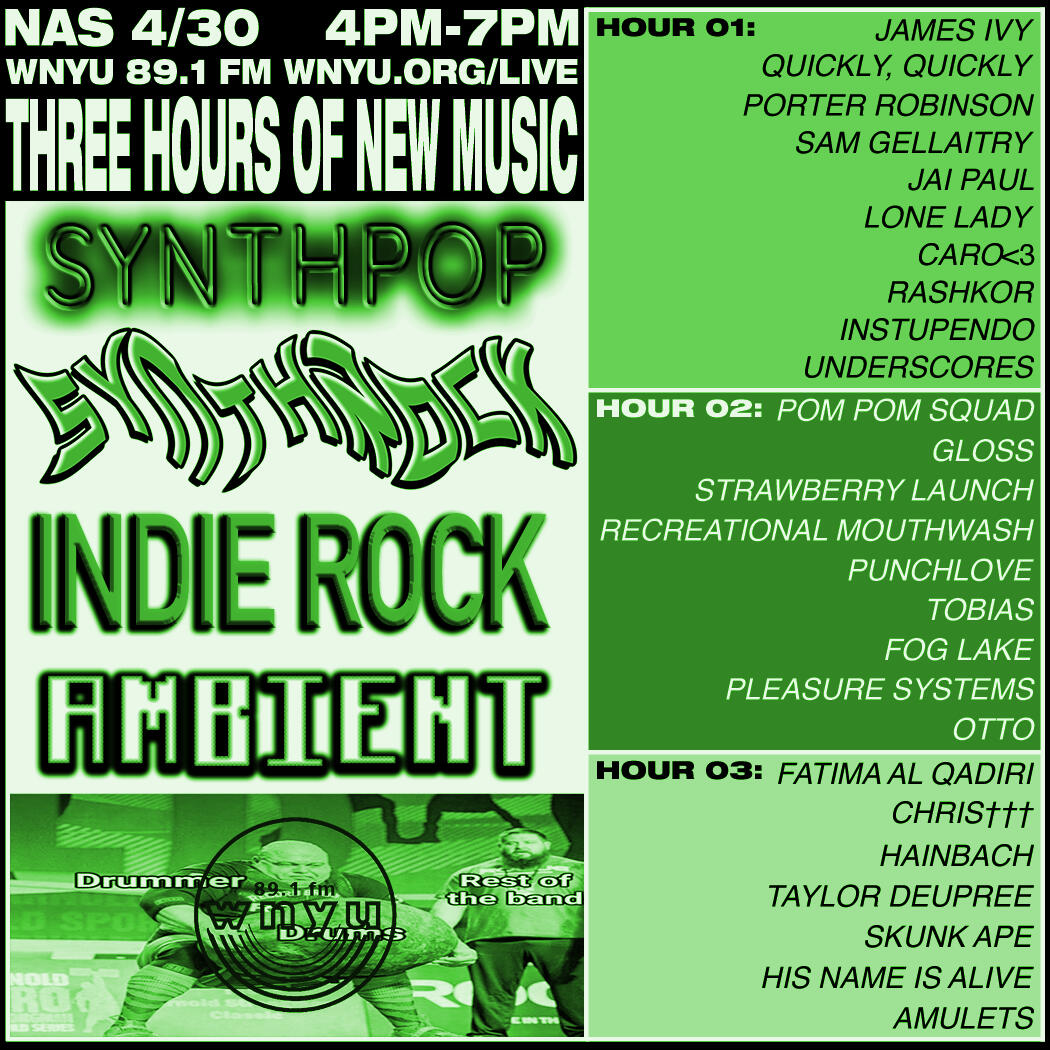 From fall 2020 to spring 2021, I took over the host slot for a weekly FM/online radio show called The New Afternoon Show, a bedrock of WNYU's programming and the station's longest running show. As host, I curated a selection of music from independent and underground musicians from online music communities and New York City's own independent music scene. For three hours each Friday evening from 4-7 PM, I played a hand-curated selection of electronic, rock, rap, and ambient music. Every week, I prepared a show poster to tease the week's lineup and promote the show on social media. Below is the full collection of posters I made for the show.