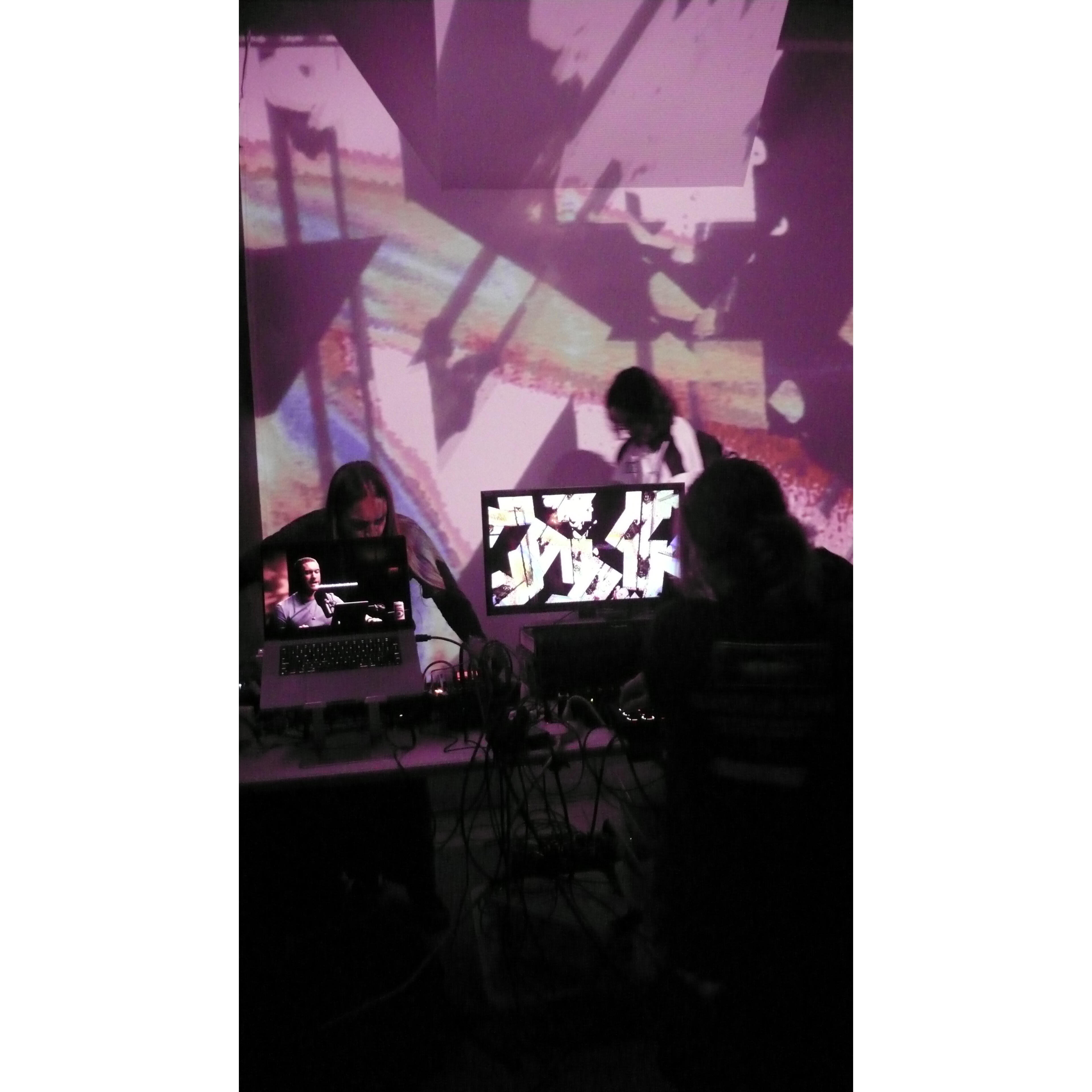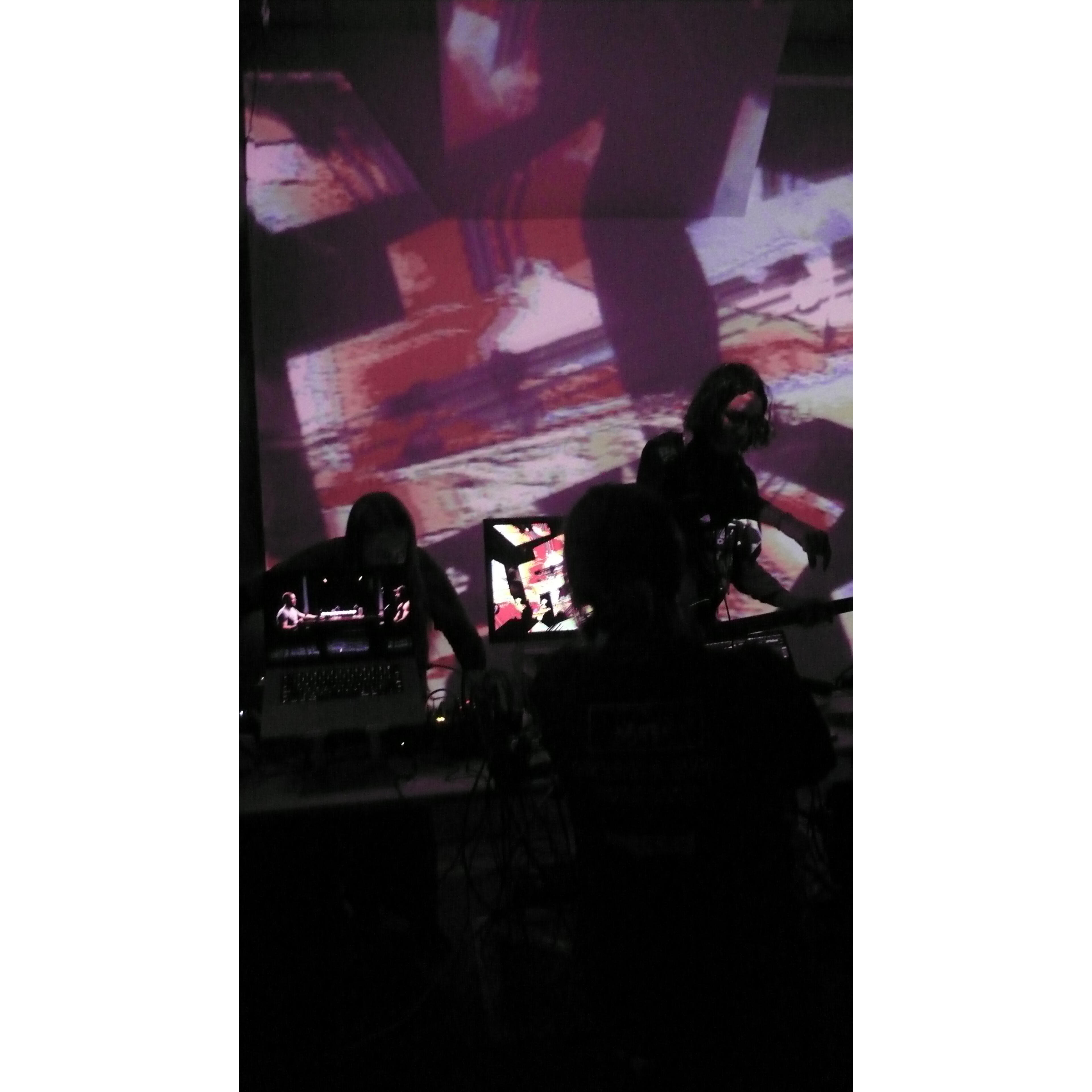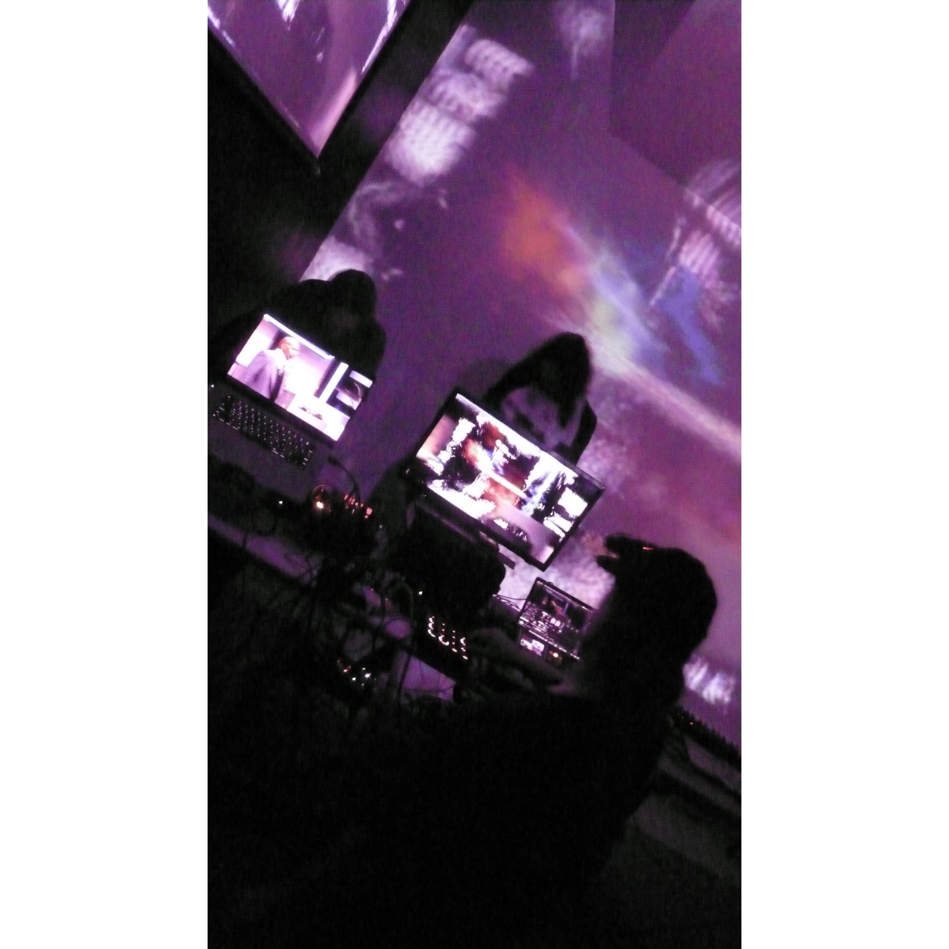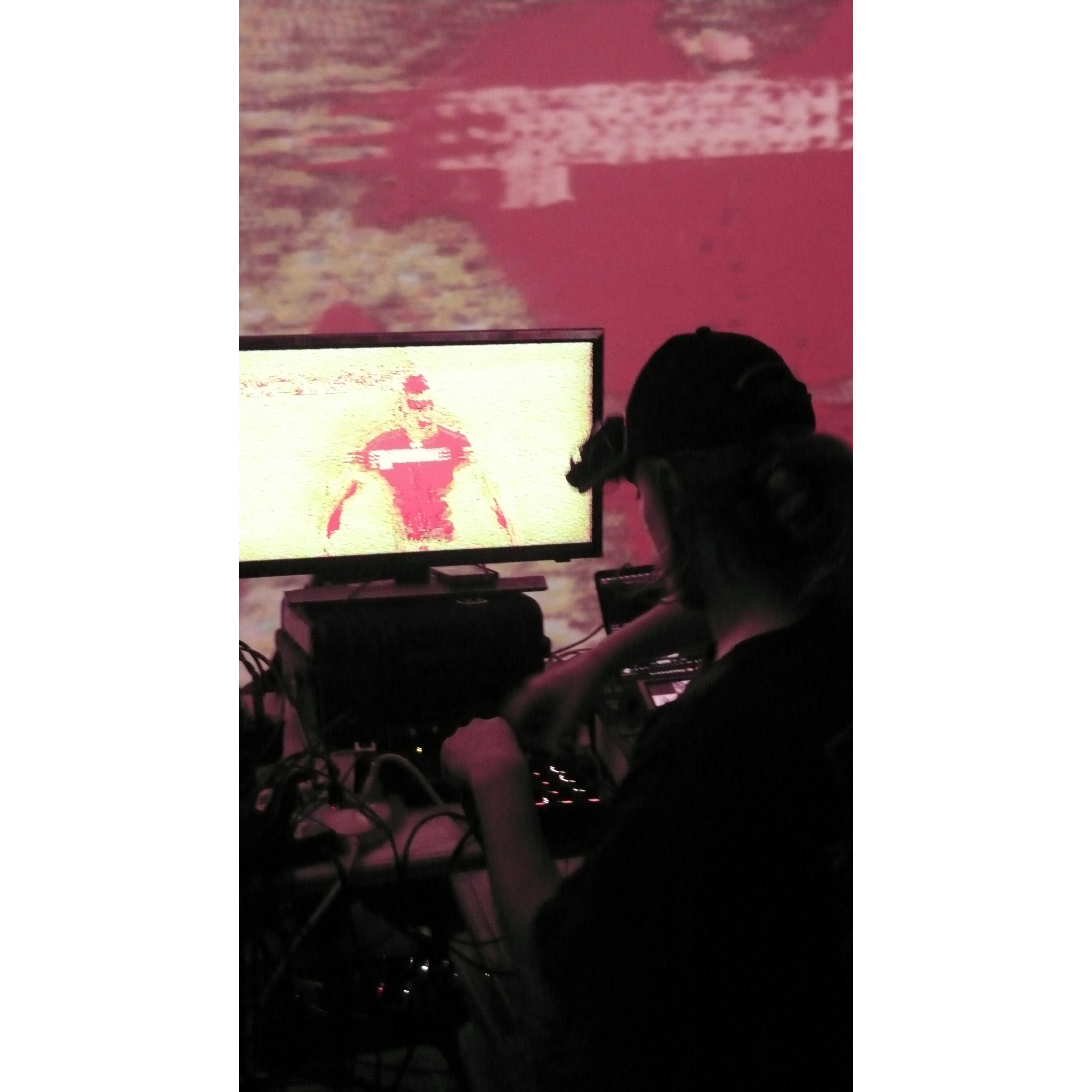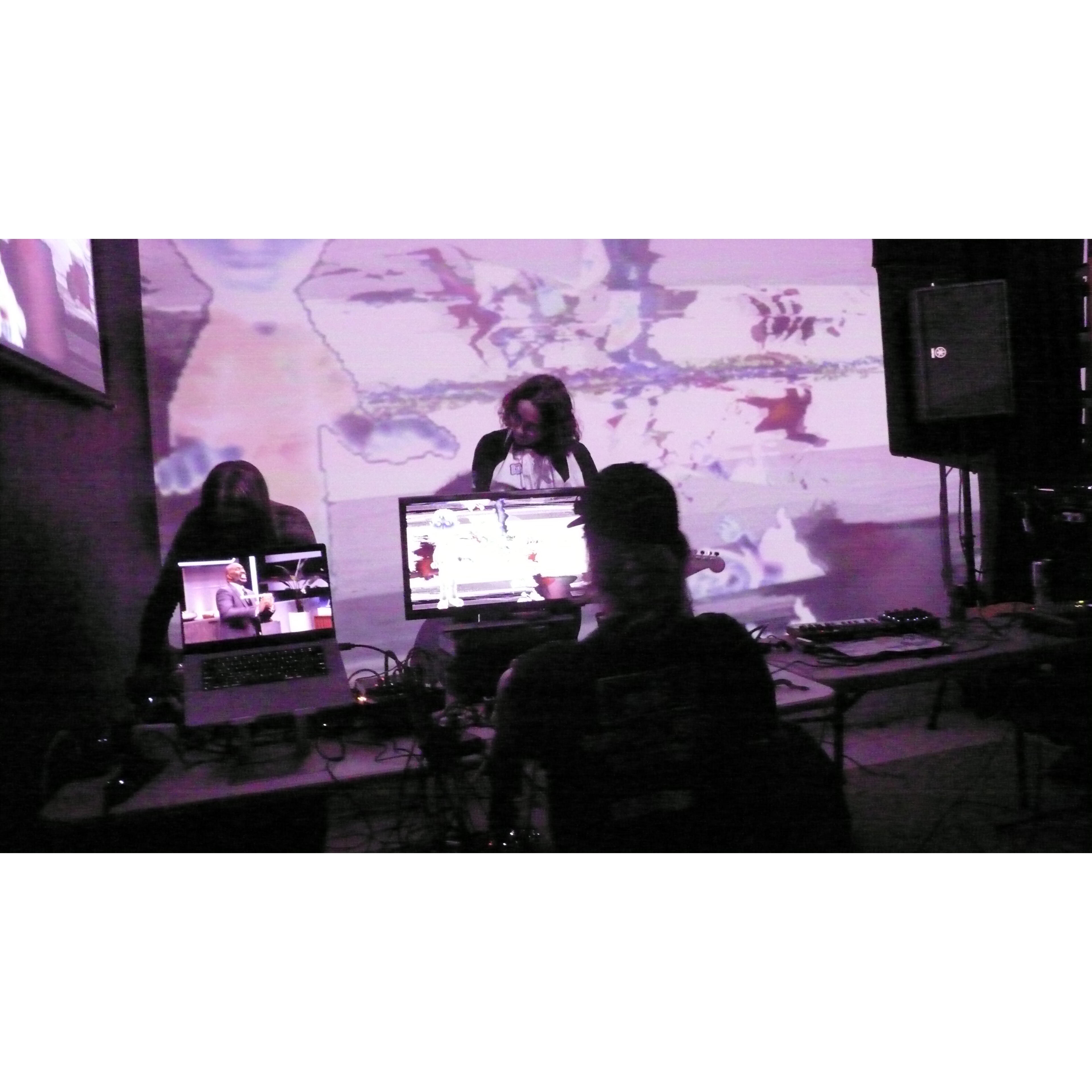 Pictures of Viz_Wel's & Co.'s visual art set at the Vjoltron videopunk night hosted by Millenium Film In Ridgewood.