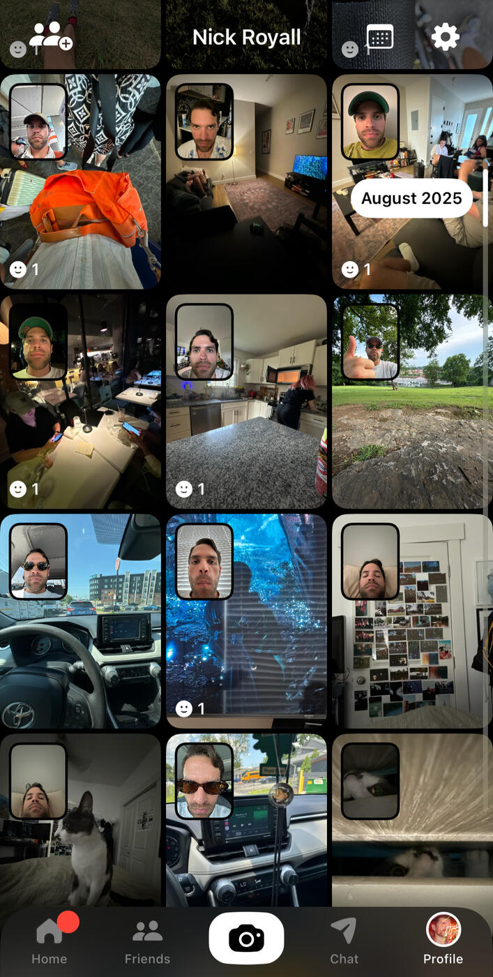 Remember BeReal? If you're like most people, you probably heard about it some time a few years ago through a friend and downloaded it for a bit before losing interest. It promised to be the cool, anti-corporate, ad-free, true-to-life social media app. Of course, it now runs on sponsored content and ads (and who knows what it does with my data). Tale as old as time. For those unfamiliar with the app, the way it works is that each user is notified at a random time that it's time to post their daily BeReal. They have two minutes to take a photo of what they're doing right then and there with both the front and back camera. You can't edit it, you can't select which picture looks the best, you just post what you're doing in that moment (you can post late, but the app has ways of disincentivizing you from doing so). You can only see other users' posts on the day they post, and every post disappears the next day, and only you can see your old posts after they disappear for others. The idea is that each post is a peek into the real life of the user. It shows how they actually spend their life day-to-day. It highlights the mundane, the ordinary, the forgettable, the parts of our existence that we tune out. It's a neat concept.While most people have left BeReal behind as a passing fad, I've stuck with it. I enjoy it as a daily document of my life, a photo journal of sorts. I've posted just about daily since January of 2022, and a lot has happened in my life since then. My mother passed away in 2022, I moved from New York to Dallas to Nashville, I got another degree, I've moved apartments five times. I'm an entirely different person at 27 than I was at 23. What BeReal has provided me is a near complete documentation of a very formative era of my life, raw and unfiltered. It is both the antithesis and the man behind the curtain of the traditional social media model. It flips the script and shows us the hideous underbelly of the social media economy. The corporate-controlled platforms that dominate our lives operate on an implicit contract whereby users can curate and present their public image to the world in exchange for volunteering an increasing amount their private selves in the form of data. It's a contract most people don't even think twice about before signing. But BeReal lets us see our own lives in pure data. We know most of what they know about us.What people post of themselves online is almost more real than their actual lives because it shapes the way that they are perceived by others. It is how they control their image, how they exist In the world outside of themselves. In our modern generation of chronically-online, digitally-native, and screen-obsessed individuals, you don't exist publicly if you have no online presence (go out in public and see how many people are on their phones, computers, or have ear buds in, we don't exist face to face in public like we used to). We live online. In exchange for existing in a form that satisfies the desire of everyone you know to keep tabs on your life all the times, these platforms gather a nearly complete approximation of who you are in data. So while other users may only see the edited and polished slideshows of your beach vacation, the corporations know the ugly details of how you spend your life. They see something more akin to what a BeReal user sees of their own post history: a digital record of the private self. Sure, BeReal's servers host a picture of each day of the last four years of my life (scary!), but at least it doesn't hide this from me. And since it exists I might as well confront the cold hard numbers of how I spend my time for my own purposes rather than for the sake of curating an algorithm that serves ads to me. Let me know myself as well as social media knows me.