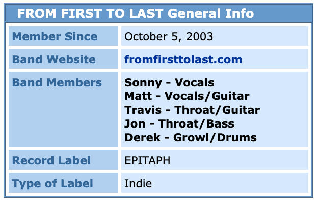 Moore mentioned in a 2005 interview that when he wasn’t at home engaging in his hobbies, he was attending concerts and raves around Los Angeles, rubbing elbows with musicians and bands in town:I grew up in like the real ghetto East L.A. hardcore scene, I'd be like the only white kid with a bunch of mexicans going to shows and stuff, but it was fuckin' awesome though because I really got to see what really went on at a young age, like at 12 years old and stuff I was hanging around in the barrio. Being a white kid, I had all these like mexicans friends… it was awesome…☺︎☝︎Sonny began forming bands and playing shows with people he met in the Los Angeles hardcore community, and it was through his participation in this scene that he met FFTL, themselves an up-and-coming band at the time. In Sonny’s own version of how he went from Myspace fanboy to frontman, he confirms again that he was familiar with the band before he was brought on to fill a vacancy in their lineup:Ok, well (the band was) Florida based, the band was actually called First to Last, it was like a pop-punk band four years ago… (The band) recorded the EP on Four Leaf Productions… They started touring… with like From Autumn to Ashes and all that stuff. They had a singer named Phil Rearden, the one that liked screamed in the band and stuff… Then they kicked him out. Then they got signed to Epitaph, then they called me. I've known Matt for a little bit. I went to Georgia where they were recording the album and I was going to try out guitar because either Matt or Travis was going to sing but then I ended up singing. It's a fucking long story.In FFLT's bio on their label’s website, the situation that led to Sonny’s band membership is summarized more succinctly:Living in Los Angeles and half-heartedly playing in another band, the then 15-year-old Moore decided to spend a few weeks with the band in Georgia, where they were recording their debut. His timing couldn't have been better. Moore arrived just as Good and Richter parted with their original singer and they were in the process of filling in the vocal gap on their own. After hearing Moore singing backups in the studio one day, a decision was made: Moore was in.And in this particularly hater-coded Vice article from 2013, the romanticized version of the story as it exists in the collective consciousness of Sonny fans is told:...In true rock-n-roll fashion, Sonny ran away (from home). He skipped over the back fence armed only with a suitcase, a dream, and an economy pack of eyeliner. He went to Georgia. He’d been corresponding online with a small emo band out there, From First To Last. They’d suggested he could play guitar if he tried out in person. Traveling 2000 miles on a whim had seemed impractical, but… fuck it, now he would. After all, what exactly did he have to lose? In Georgia, they liked this odd milky youth so much that they made him singer. In return, as a recently-orphaned furnace of cold fury, he worked them so hard that they got into the charts, sold over 200,000 records and got picked up by a major label.
